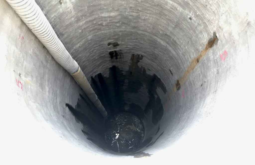 Spritzbetonverbau DN 6500 mm und Deponieschacht DN 3000 mm (13 Stahlbetonelemente mit einem Stückgewicht von bis zu 24 t)