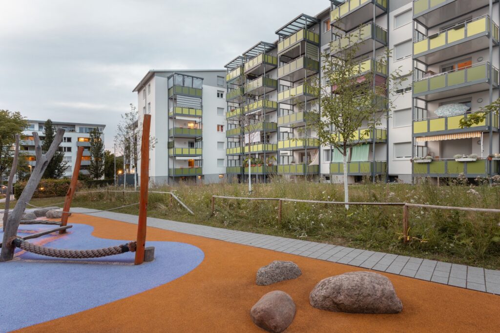 Die Wohnanlage weist ca. 60 Wohnungen auf, die über 5 Hauseingänge zugänglich sind.